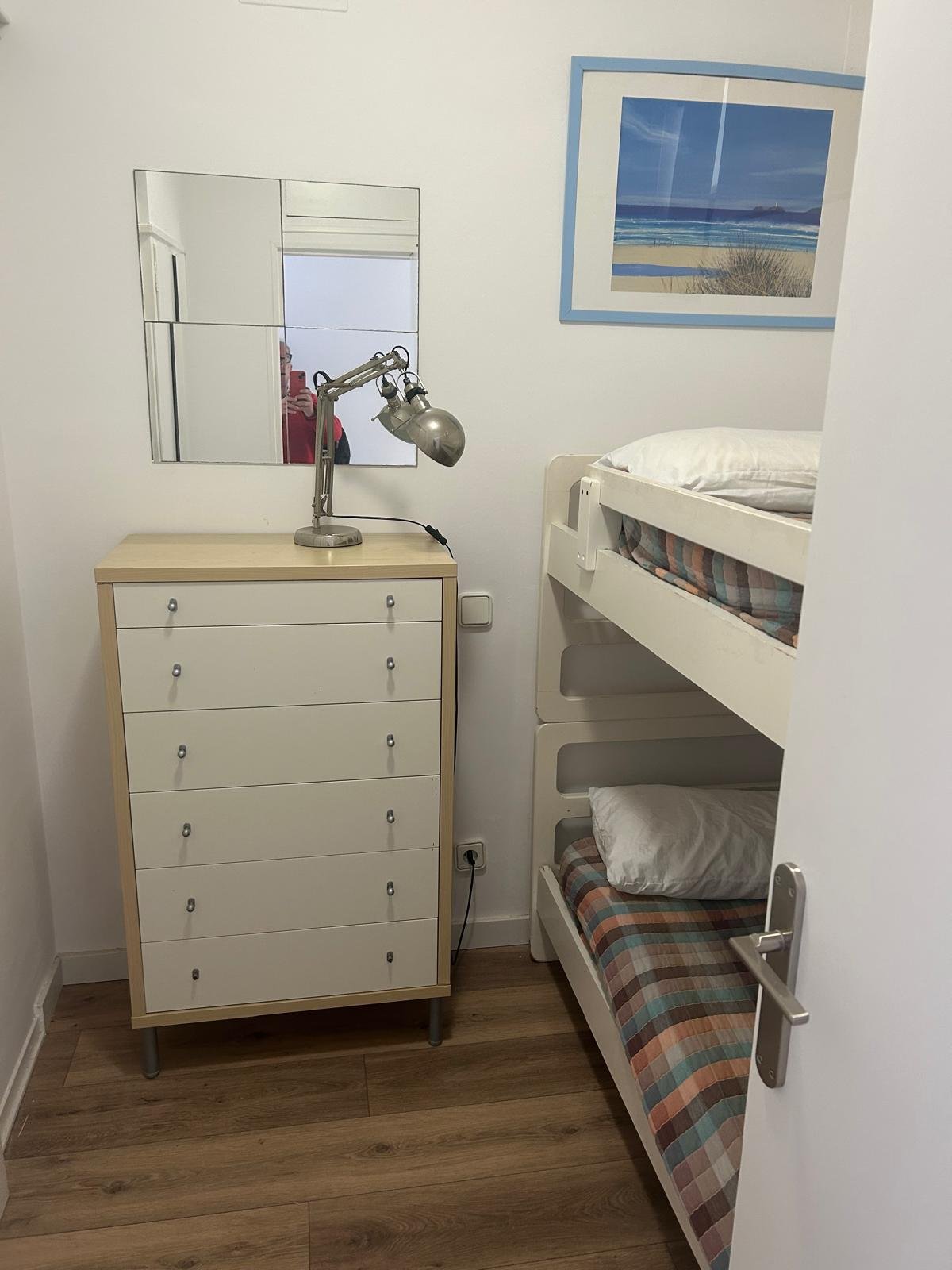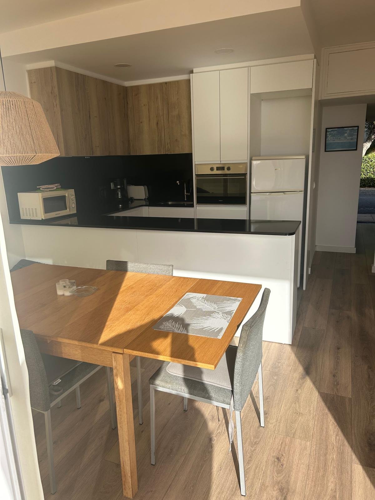 Es compon d’1 dormitori amb llit matrimoni i bany amb dutxa, 1 dormitori amb lliteres i bany amb dutxa. Disposa d’ampli saló menjador amb cuina renovada oberta amb sortida a una àmplia terrassa amb fantàstiques vistes al mar. Diverses piscines comunitàries. Plaça de pàrquing per a un cotxe. Disposa de llicència turística.