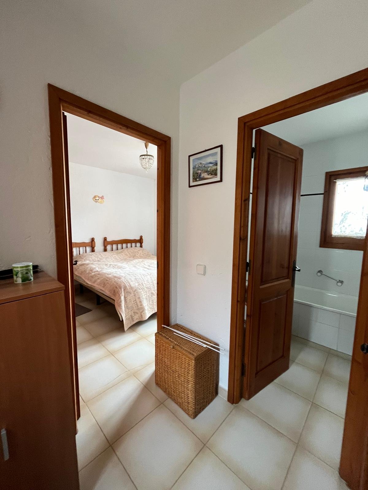 A la planta principal hi trobem una cuina independent, un menjador i una sala d’estar lluminosa amb sortida directa a una àmplia terrassa amb vistes panoràmiques al mar, un espai ideal per gaudir del paisatge mediterrani. Aquesta planta disposa també de dos dormitoris dobles i dos banys complets.