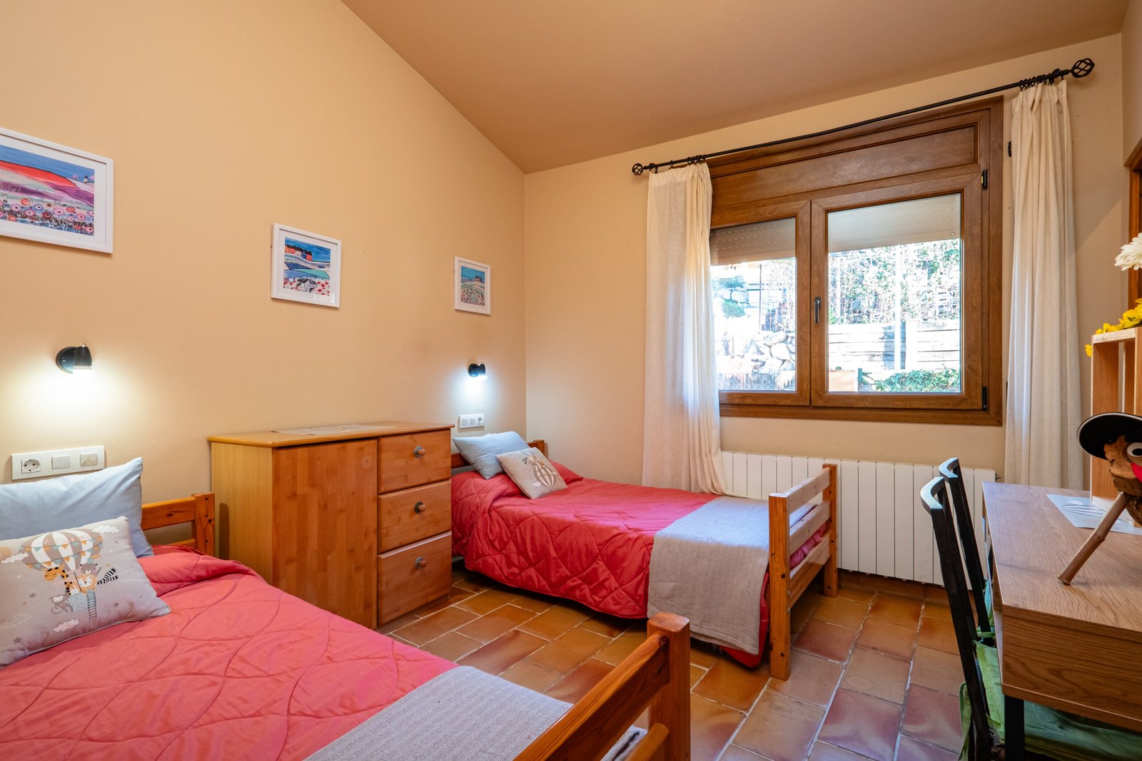 Disposa de dues habitacions dobles amb vestidor, un bany complet amb banyera i dutxa, un ampli saló-menjador amb llar de foc i cuina oberta. Des de la terrassa es gaudeix de vistes panoràmiques a la piscina i al bosc.