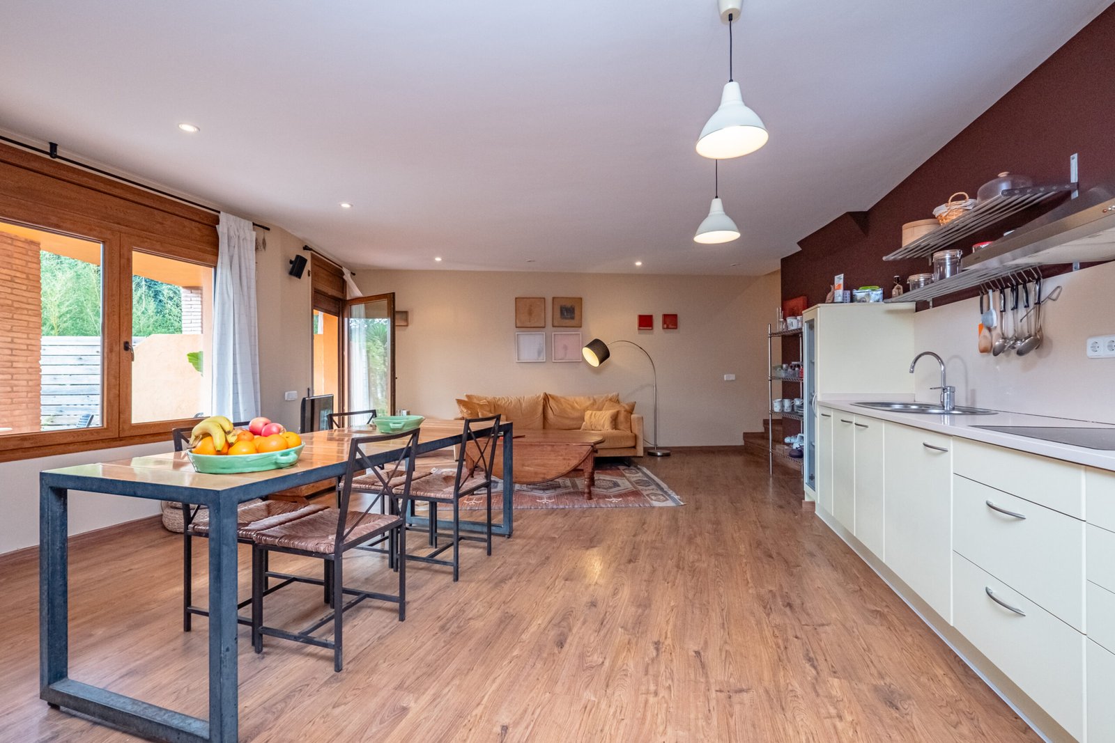 A l’exterior trobem una piscina privada, zona de barbacoa i menjador d’estiu, dues places d’aparcament, safareig amb bany complet i traster. L’habitatge compta amb calefacció de gasoil i finestres d’alumini.